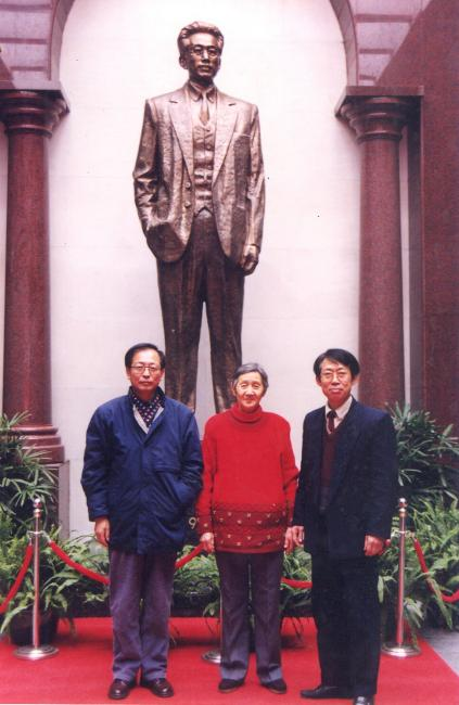 1999年1月瞿秋白纪念馆新馆落成之日,秋白女儿瞿独伊(中)、陈铁健先生(左)与赵庚林馆长(右)合影