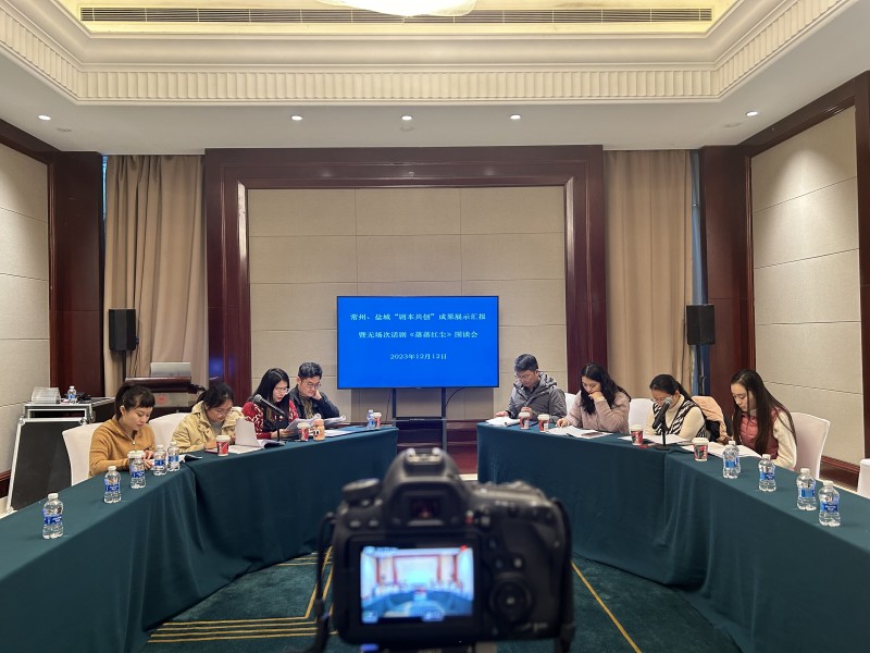 会议还举行了常州、盐城“剧本共创”成果展示汇报暨无场次话剧《落落红尘》围读会。剧目室全体编剧和研究人员收到了剧本《落落红尘》后,一起分角色朗读,大家通过声情并茂的朗读将剧中人物的内心世界展现得淋漓尽致。