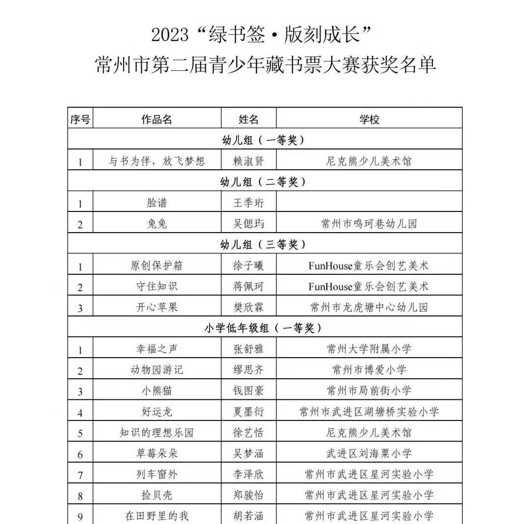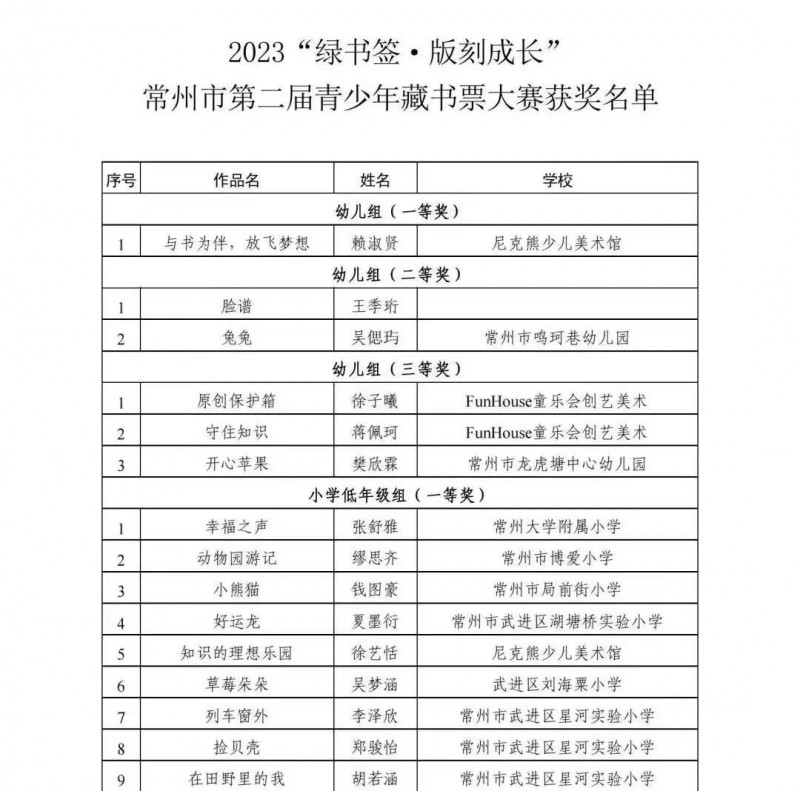 2023“绿书签·版刻成长” 常州市第二届青少年藏书票大赛评奖结果公布