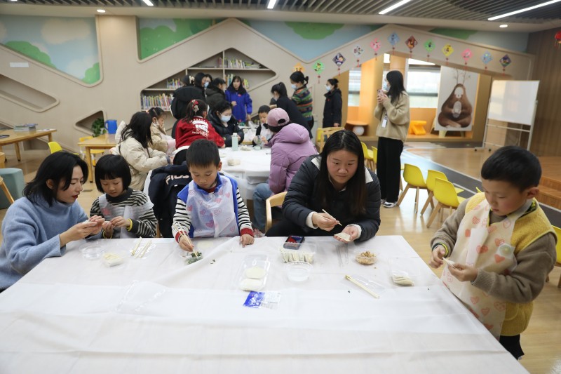 随后,进入活动最主要的环节——包饺子。冬至吃饺子,不仅有防止耳朵冻之意,还为了纪念名医张仲景“祛寒娇耳汤”之恩。活动现场,家长和小孩分工协作,小朋友们还互相交流经验,比拼着包出独一无二的“定制款”。众人拾柴火焰高,各式各样的饺子很快就摆满了盘子,现场处处洋溢着“家”的味道、“家”的温馨。许多家长表示,“今年冬至,我们全家就吃这些饺子了。”
