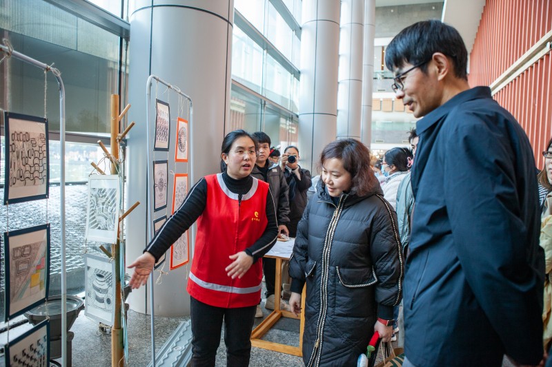 最后,大家来到博物馆共享大厅,观摩了馆校合作研究性学习项目成果展示,该项目由志愿者和博物馆教育人员共同开展,是博物馆美育进校园的阶段性成果,丰富的文化创意展示受到与会嘉宾和志愿者的赞赏和喜爱。