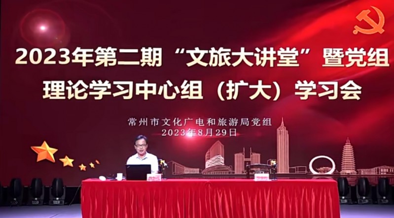 8月29日上午,常州市文化广电和旅游局在常州市文化艺术管理中心小剧场召开第二期“文旅大讲堂”暨党组理论学习中心组(扩大)学习会,特邀中央文化和旅游管理干部学院远程培训部主任戴有山现场授课。局党组成员、副局长石小东主持会议。局党组成员、机关全体干部及局属各单位领导班子成员、支委委员共100多人参加会议。