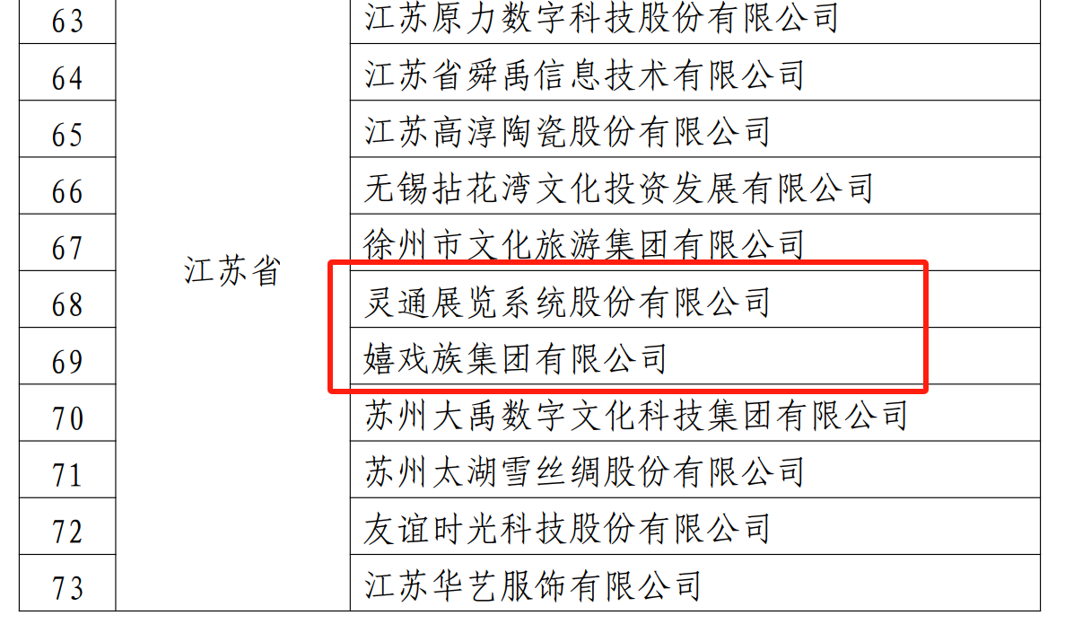 3月12日,文化和旅游部产业发展司公示了国家文化产业示范基地评选与复核结果,江苏省共有14家单位入选新一批国家文化产业示范基地拟命名名单,8家单位入围拟保留国家文化产业示范基地复核名单,我市灵通展览系统股份有限公司、嬉戏族集团有限公司等2家单位入选新一批国家文化产业示范基地拟命名名单,恐龙园文化旅游集团股份有限公司入围拟保留国家文化产业示范基地复核名单,入选数量列全省第三。