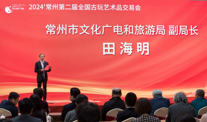 常州市文化广电和旅游局副局长田海明在致辞中提出,常州作为国家历史文化名城,拥有深厚历史文化底蕴,还有丰富的古玩收藏传统和一大批热爱文物艺术品的社会群体。为了推动文商旅融合发展,常州市委、市政府已制定并实施了相关实施意见,旨在打造具有全国影响力的专业型会展经济品牌,并加快建设引领长三角、辐射全国、面向全球的消费中心。常州持续举办全国古玩艺术品交易会,目的是促进古玩艺术品行业的深度交流与合作,打造辐射全国的古玩艺术品交易会展经济品牌,推动古玩艺术品市场蓬勃发展。