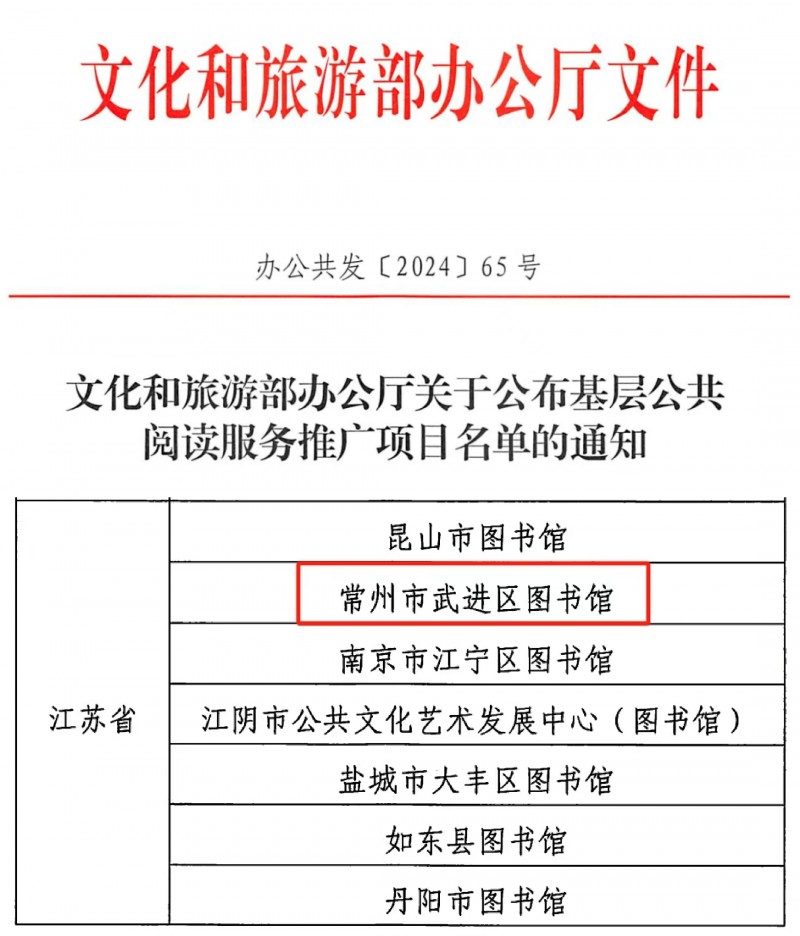 国家级!武进区图书馆入选全国基层公共阅读服务推广项目名单