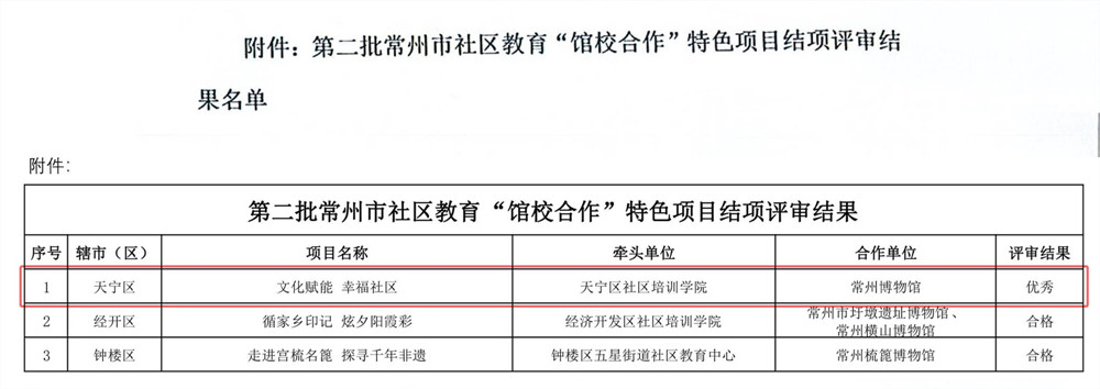 联合天宁区社区培训学院开展“我在常博拍文物”“我在常博画常州”实景课堂,将常州吟诵、常州烙画等非遗活动送进社区学院。与锦绣花园社区、世茂香槟湖社区携手开展“孟河医派与夏日防病小方”“静守南田”等活动,为社区老人创造接触博物馆、走进博物馆的机会。