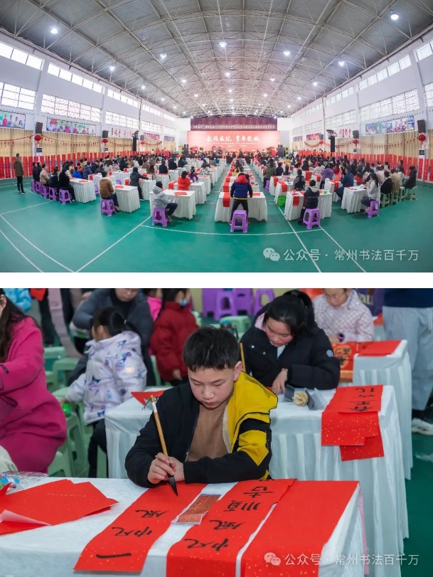 为贯彻落实习近平总书记关于大力弘扬中华优秀传统文化的指示,在2024春节来临之际,通过春联这一传统形式,延续文化基因,萃取优秀思想精华,展现新时代的精神气象,倡导健康向上、文明节俭过新春的新风尚,号召我市各书法特色学校、“墨香校园”校师生通过笔墨抒发对新春的美好愿景,培育青少年热爱家国的情怀。由常州市教育局、常州市文明办联合主办的“龙腾盛纪·墨舞龙城”2024常州市百校送福迎春义务送春联活动,近日在常州市新北区河海实验小学拉开帷幕。