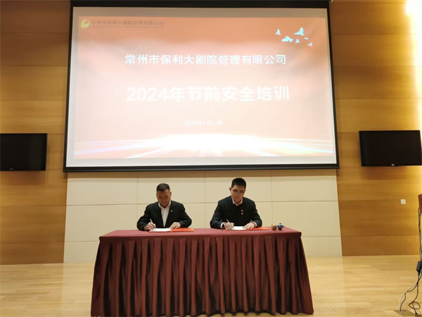 为认真贯彻“安全第一、预防为主、综合治理”的安全生产工作方针,强化剧院安全生产工作,全面落实安全生产责任制,同时根据总部下发《关于开展保利院线安全生产集中整治工作的通知》及常州市委市政府下发《关于常州市深入开展安全生产专项整治行动工作方案通知》要求,近日,常州大剧院组织开展了2024年度安全生产责任书签订仪式,并进行春节前全员安全教育培训。
