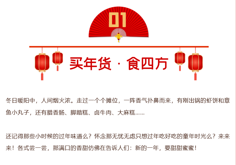 从准备年货那一刻开始,我们便满怀着欣喜,对生活的热爱,提前感受过年的快乐。