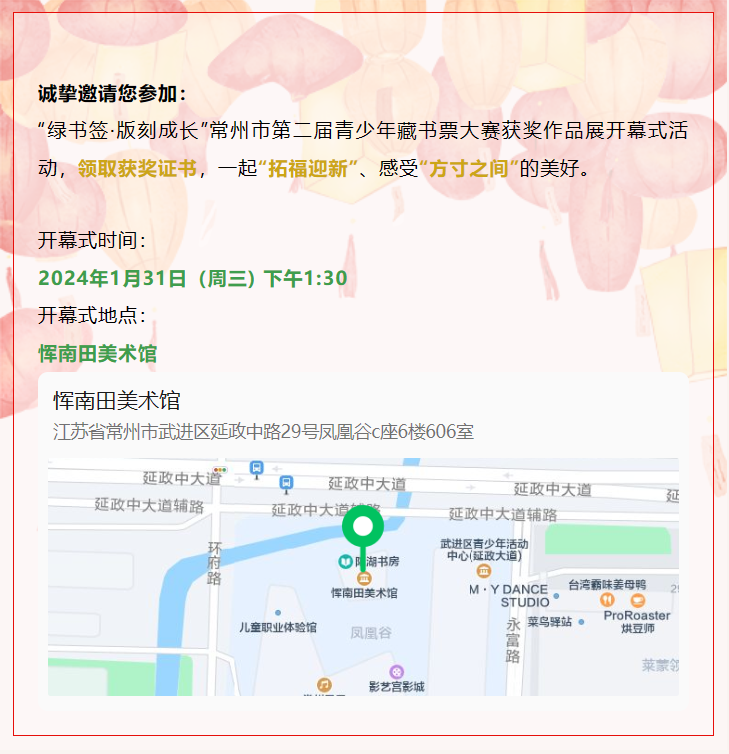 展览预告 | “绿书签·版刻成长”常州市第二届青少年藏书票大赛获奖作品展开幕式活动