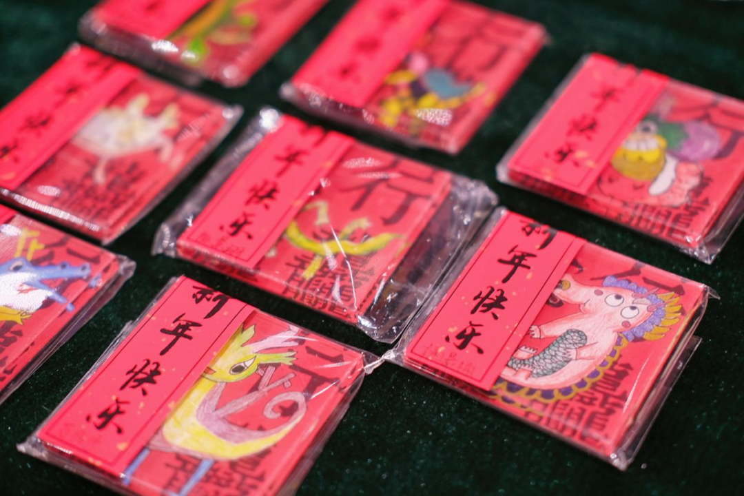 小龙人们的绘画作品制作成各种各样的文创周边,惊艳亮相:钥匙圈、书签、抱枕、冰箱贴、丝巾、明信片、胸针、红包、对联……
