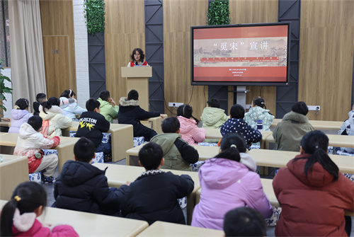 2024年1月30日,来自浙江大学艺术与考古学院“妙语绘言”宣讲团的四名成员——文博系研究生蒋忆青、徐高虹、洪思思、许奕敏作为常州博物馆寒假大学生志愿者,依托“声”动常博志愿宣讲品牌,将“中国历代绘画大系”宣讲与“毗陵· 宋——文物中的宋代常州”特展相结合,面向青少年观众开展了毗陵“觅宋”美育宣讲活动,上下午两场共吸引80余名中小学生参加。