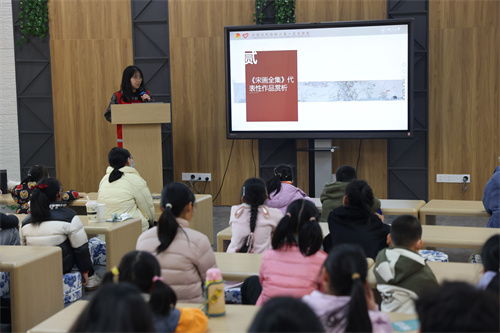 随后,同学们以“听”开启了毗陵“觅宋”之旅。主讲人蒋忆青、徐高虹从“中国历代绘画大系”修典故事、《宋画全集》代表性作品、宋代绘画中的历史故事三部分进行美育宣讲。