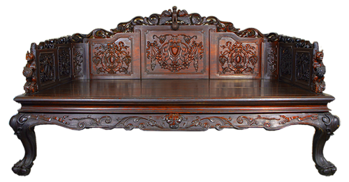 清 红木浮雕西藩花五围屏罗汉床