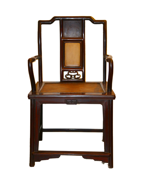 清 红木软屉镶云石罗锅搭脑扶手椅