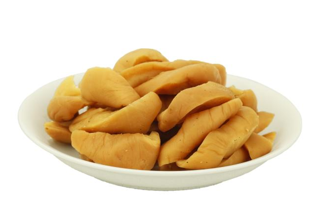 常州素火腿用料主要是豆腐衣,经过制卤、渍皮、卷制、捆扎、上笼、蒸制、放凉等多道工序精制而成。成品素火腿色呈豆黄,芳香四溢,入口微甜干鲜,韧而柔软,醇 郁爽口,切成薄片,淋上麻油,虽不是火腿肉,但胜似火腿肉,令人百吃不厌。