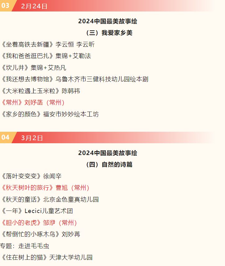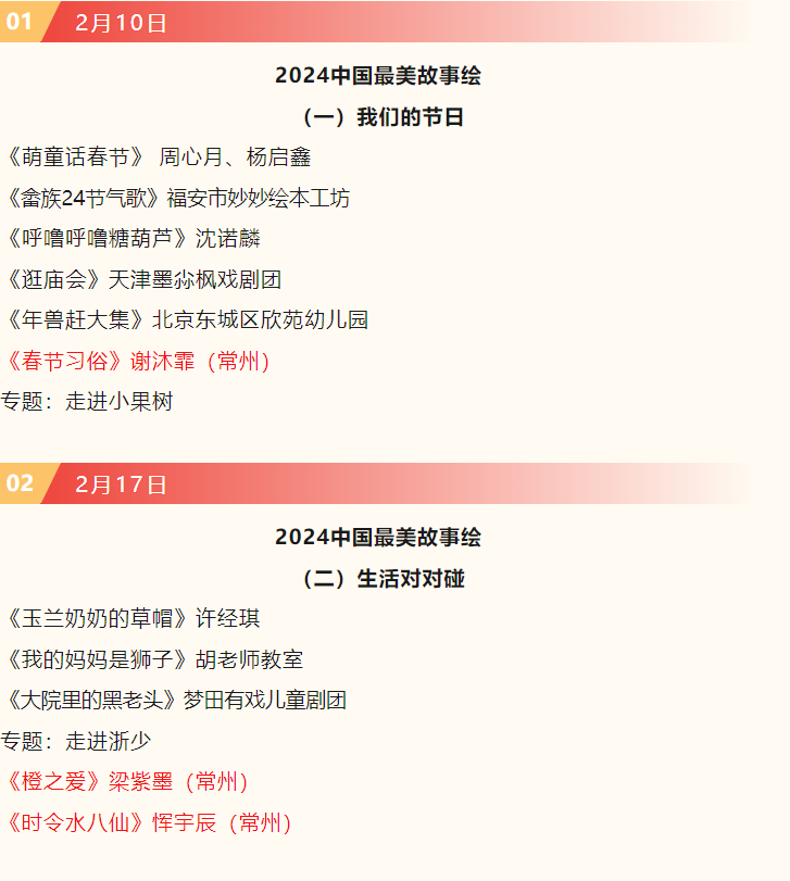 2024最美故事绘第一至第四期中将有常州6位小朋友作品播出,具体节目安排如下(播出时间每周六早上六点,CCTV-少儿频道):
