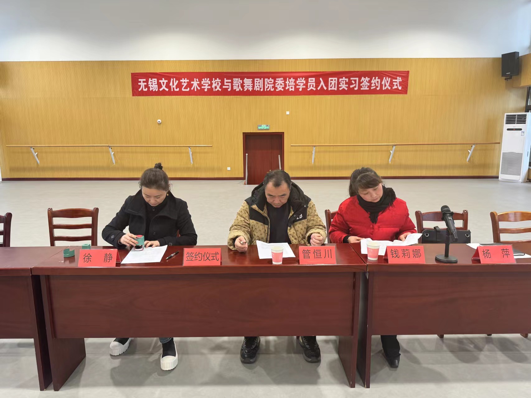 2024年2月20日上午,由无锡文化艺术学校领导带领的“21大舞蹈常州市歌舞剧院委培班”学生及家长,在江苏常州市歌舞剧院举行了委培学员入团实习签约仪式。签约仪式上常州市文化广电和旅游局艺术处二级主任科员 薛明霞,常州文化艺术管理中心主任 杨萍,无锡文化艺术学校副校长 钱莉娜、招生办主任 管恒川、21大舞蹈班班主任 胡乐蕾及江苏常州市歌舞剧院全体领导班子出席了此次签约仪式。