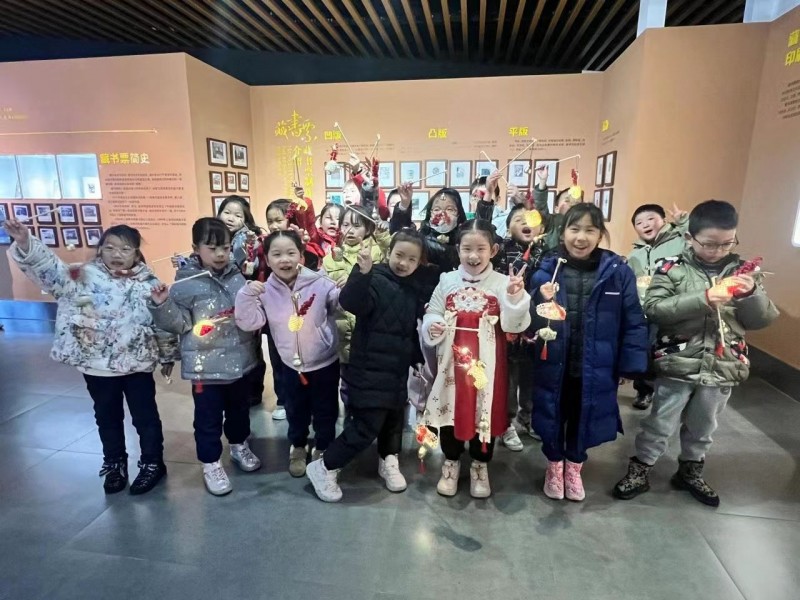 当所有参与家庭点亮灯笼时,大家合影留念,笑容满面。活动中还进行了元宵节限定贺卡拓印,体验套色版画印制过程。授课老师科普元宵节知识,并进行有奖问答,孩子们积极发言。最后,所有参与家庭获得了藏书票种子书签盲盒和2024年常州市文化馆文创年历。