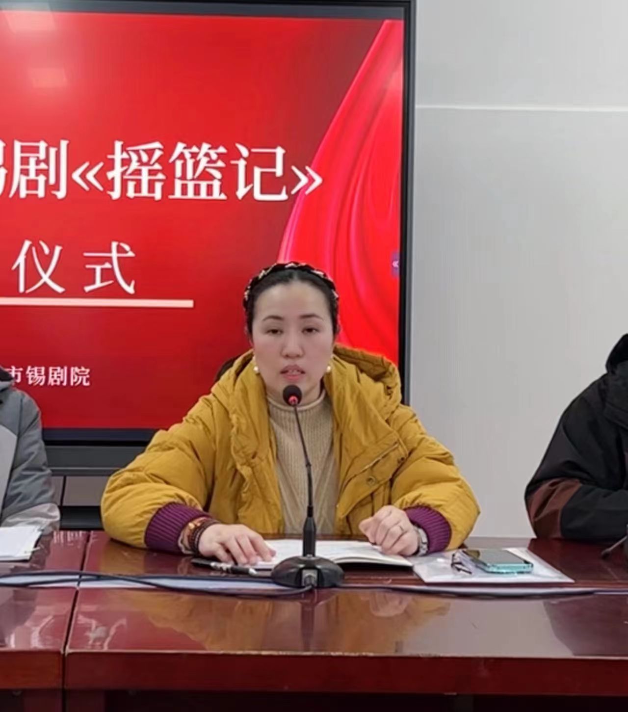 随后,常州市锡剧院院长夏雪慧发表了热情洋溢的讲话,她强调了排练锡剧《摇篮记》的重要性,认为这部戏不仅是常州市锡剧院在新的一年里在常州大剧院上演的第一部精品戏,还是今年常州文艺精品展演季的一部分,同时也是传承和发扬锡剧艺术的重要步骤。夏雪慧院长对全体演职人员寄予了厚望,希望大家能够充分发挥自己的才华和创造力,将《摇篮记》打造成一部具有时代特色和艺术价值的精品力作。