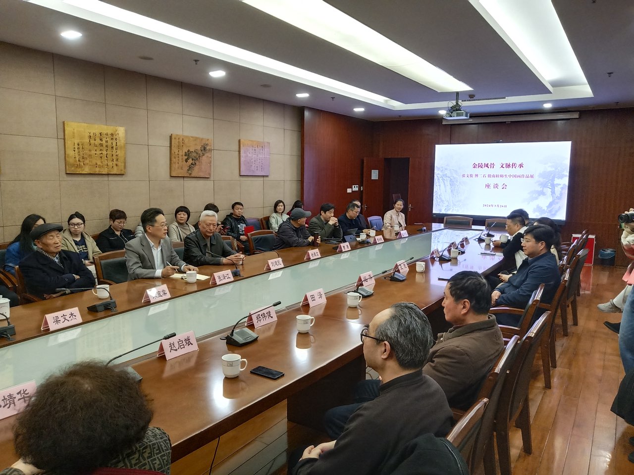 常州市原政协副主席朱剑伟、江苏省美术馆原副馆长郑伟健及常州大学商学院教授田泽等专家学者,共同出席了此次画展开幕式。当天下午,在常州博物馆会议室举行了以“金陵风骨 文脉传承”为主题的座谈会,20余名书画专家、学者齐聚一堂,就相关议题进行了深入交流。