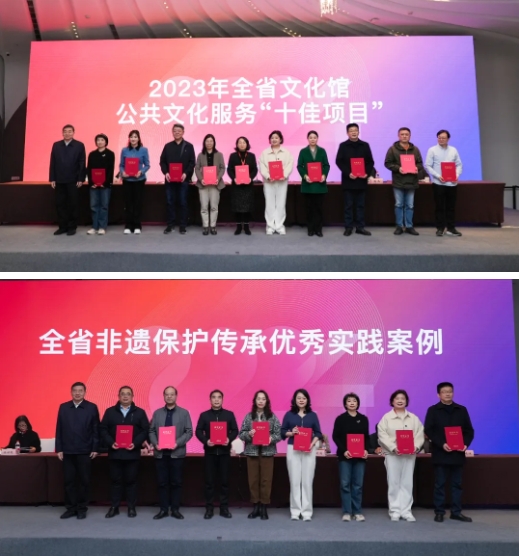 为更好加强全省文化馆五级联动,密切合作,在更高水平上实现资源共享、服务下沉,2024年江苏省文化馆将在全省20个基层公共文化空间设立“文润万家”文艺实践基地,会上举行了基地授牌仪式;向全省30位在岗奋斗30年的文化馆人颁发“文润30年”荣誉证书,以此肯定基层文化馆(站)工作人员为江苏群众文化事业作出的突出贡献;向全省15位“优秀非遗工作者”颁发荣誉证书,感谢他们发扬工匠精神,以高度的文化使命感和责任感在江苏非遗保护工作中积极作为;为鼓励创新项目,推广先进做法,以评促进,不断提升全省文化馆(站)及非遗保护中心工作效能,向在2023年全省文化馆公共文化服务项目(案例)评选活动中获得“十佳项目”的10家文化馆(站)、4家优秀组织单位以及荣获“全省非遗保护传承优秀实践案例”的15家实施单位颁发荣誉证书。