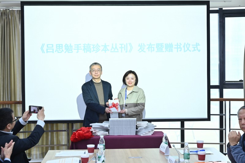 现场,上海古籍出版社向常州三杰纪念馆赠送《吕思勉手稿珍本丛刊》新书一套40本。