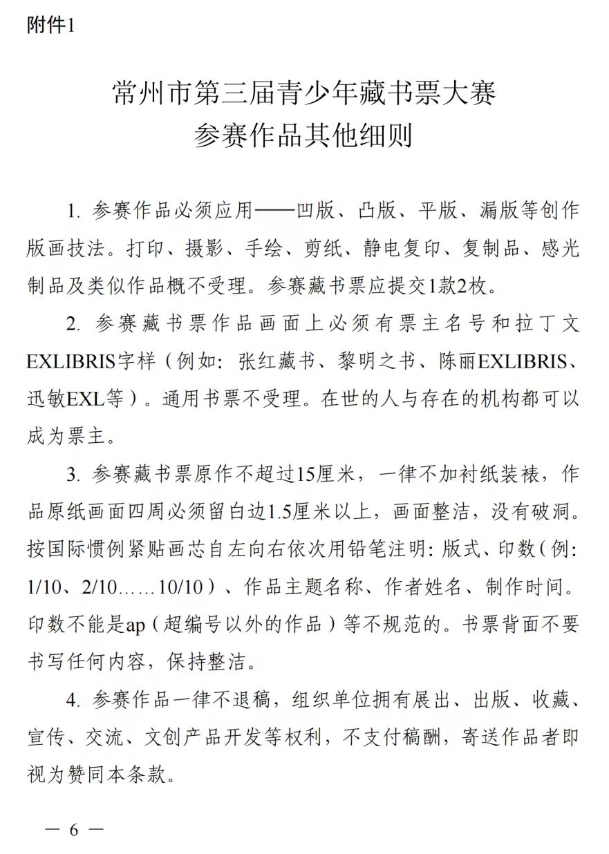 3. 决赛要求:进入决赛的选手需现场创作并制作一幅藏书票小作品(具体时间及详细要求另行通知)