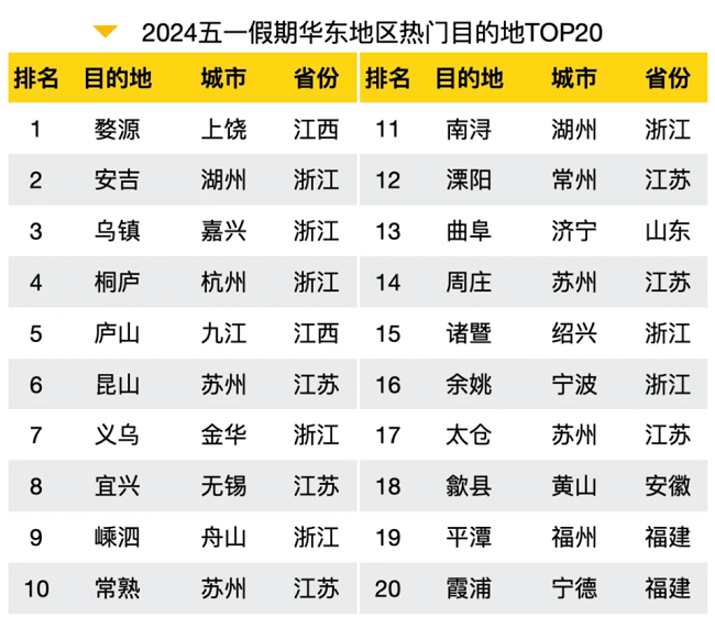 近日,为全⾯了解2024年旅游消费者偏好,深入把握自由行市场的未来趋势,马蜂窝发布《2024年五一大数据报告》。其中,溧阳位列华东地区热门目的地第12位。