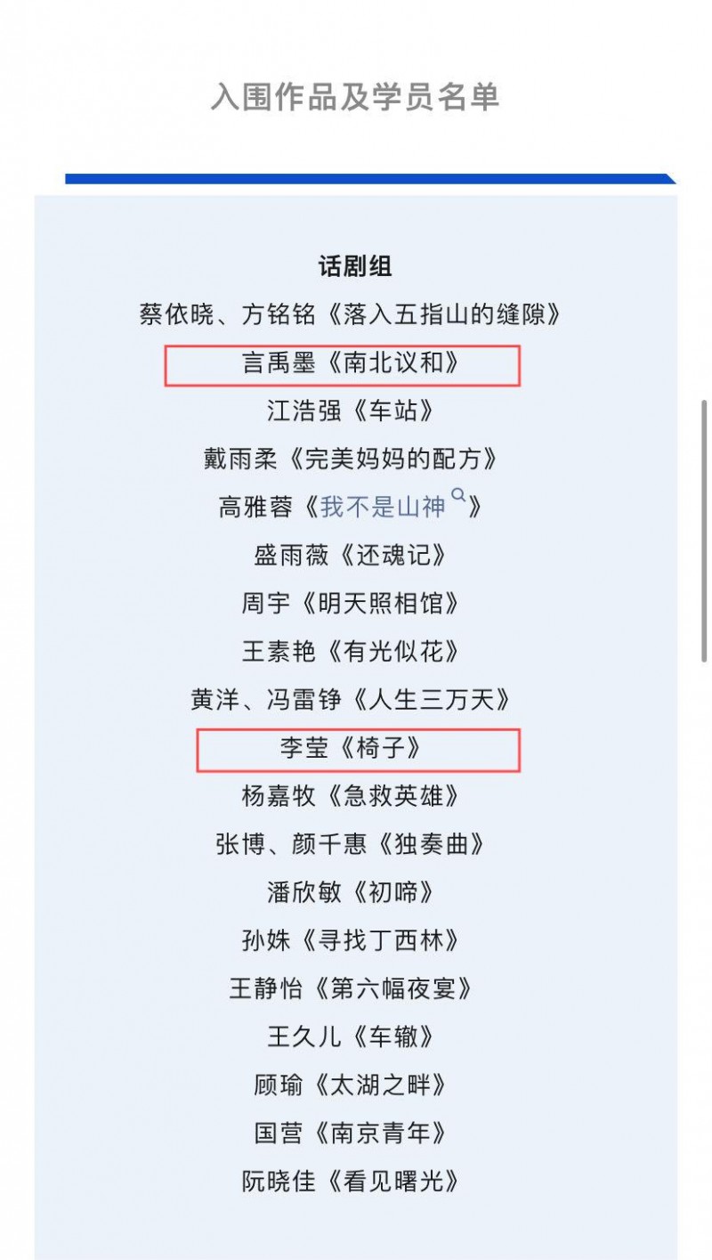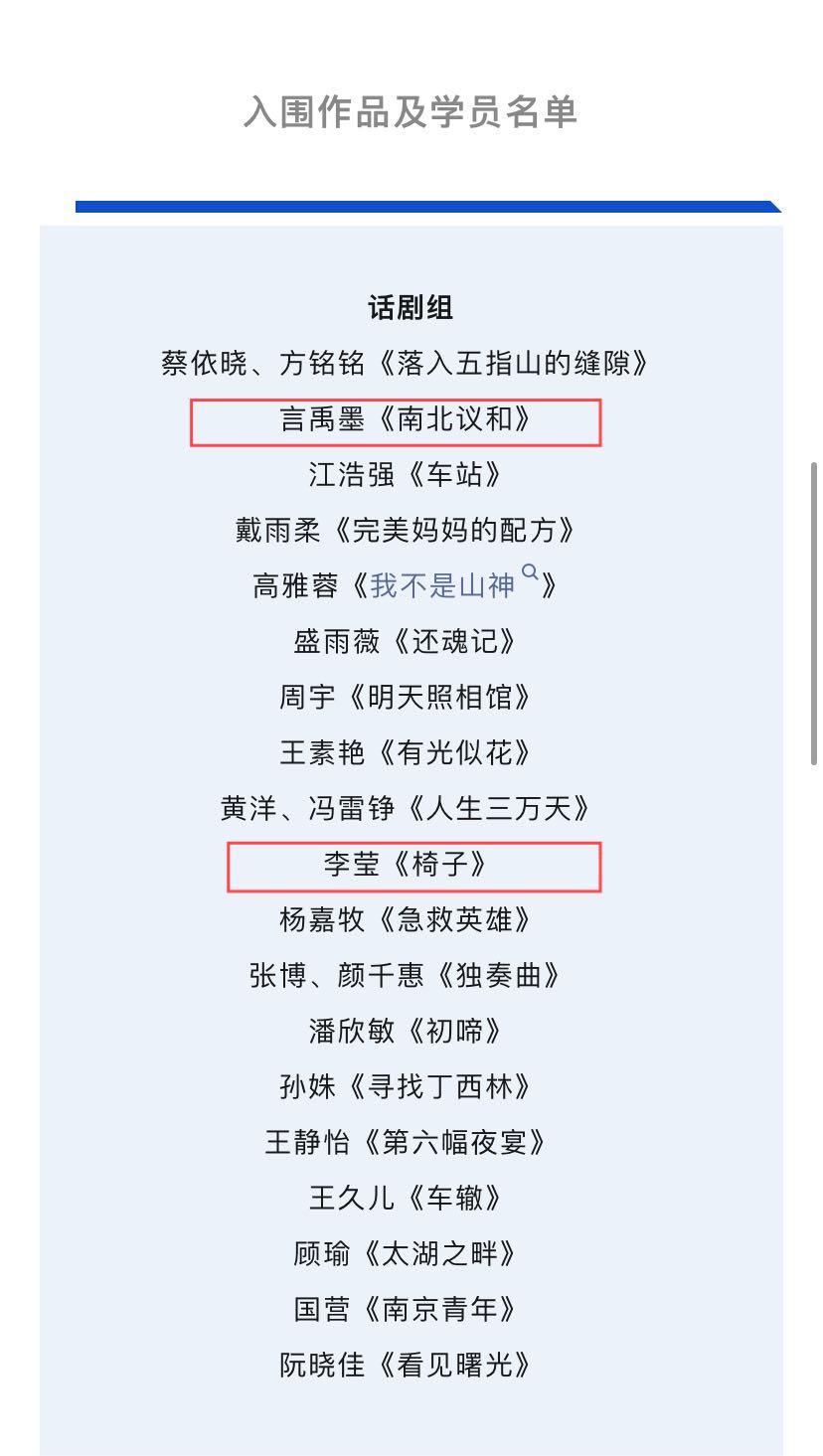 5月27日,2024年“江苏省戏剧剧本大纲征集”公布结果,由常州市文化艺术研究所言禹墨报送的话剧《南北议和》、李莹报送的话剧《椅子》入选,作者将参加由江苏省剧本创作孵化中心主办的第四期培训营。
