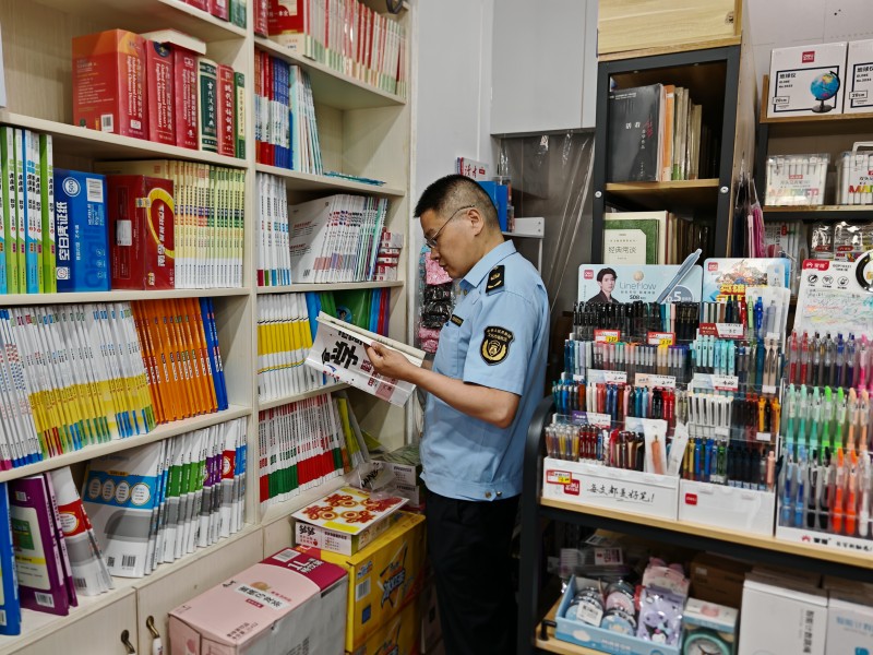 市文化执法支队联合相关部门,对书店、文具店等文化经营场所进行检查,现场查看经营场所证照手续是否齐全有效,进货渠道是否规范,有无销售侵权盗版、违禁出版物,并向经营场所负责人普及“扫黄打非”和版权保护工作的重要性,提升经营者责任意识,督导经营者规范诚信经营。