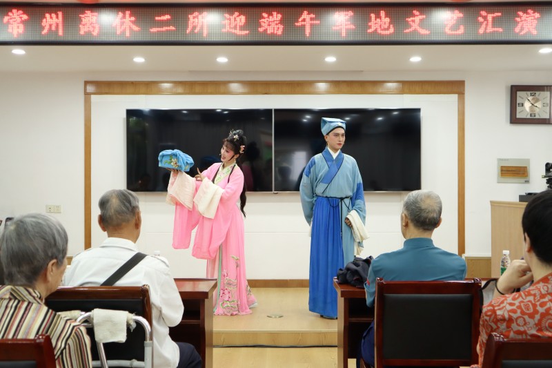 仲夏端午佳节至,又到粽叶飘香时。为进一步弘扬中华民族优秀传统文化,传承孝老爱亲传统美德,6月3日下午,常州锡剧院党支部和市文化艺术中心党员志愿者们走进江苏省军区常州第二离职干部休养所,开展了一场主题为“迎端午、传浓情”的党日活动,用文艺的形式为老干部们送去了端午的祝福和关爱。