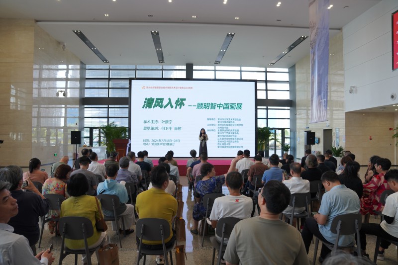 2024年7月18日上午10时,“清风入怀——顾明智国画作品展”在常州美术馆一楼大厅隆重开幕。本次展览由常州市文学艺术界联合会和常州市美术家协会指导,常州纺织服装职业技术学院主办,刘海粟美术馆(常州美术馆)、西太湖美术馆、常州市花鸟画研究会、常州市工艺美术家协会、常州市艺术投资业商会、常州煊语文化传媒有限公司和全国职业院校美育联盟协办。