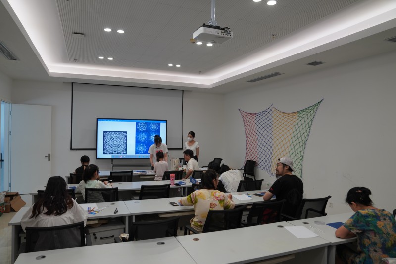 蜡染,是我国民间传统纺织印染手工艺,古称蜡缬,与绞缬(扎染)、灰缬(镂空印花)、夹缬(夹染)并称为我国古代四大印花技艺。蜡染技艺以其图案丰富、色调素雅、风格独特而著称,广泛用于制作服装服饰和各种生活实用品,具有朴实大方、清新悦目的特点。在活动中,黄宏达老师为参与者详细讲解了蜡染的历史和技艺,并指导大家使用卡纸和笔拼贴出蜡染图案。活动以蓝底白色为基调,通过绘画点、线、面图形和连续纹样,使得每位参与者都能创作出独具特色的作品。大家纷纷表示,在创作过程中不仅体验到了手工艺的乐趣,还加深了对非遗文化的理解和热爱。
