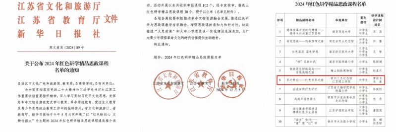今年5月,省文化和旅游厅、省教育厅、新华日报社共同开展了以“红色映初心 文物传薪火”为主题的2024年红色研学精品思政课程遴选推介活动。近日,经专家核审,推选出30个红色研学精品思政课程。常州三杰纪念馆联合江苏理工学院申报的《乐之秋白——红色音乐之旅》成功入选。