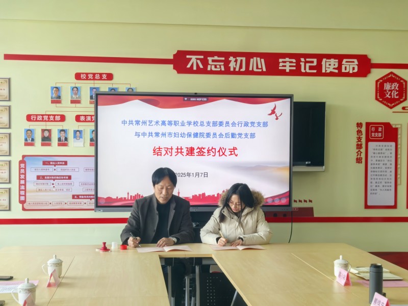 为实现教育资源与医疗资源有效整合,落实以党建促发展的目标,共同提升党建工作水平,1月7日上午,常州艺术高等职业学校行政党支部与常州妇幼保健院后勤党支部举行了支部共建签约仪式,开启了医校携手、联合共建新局面。常州艺术高等职业学校党总支委员、副校长、工会主席熊伟忠,常州市妇幼保健院党委委员、副院长李凯出席活动。