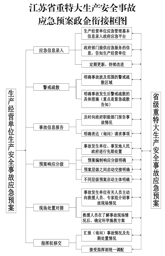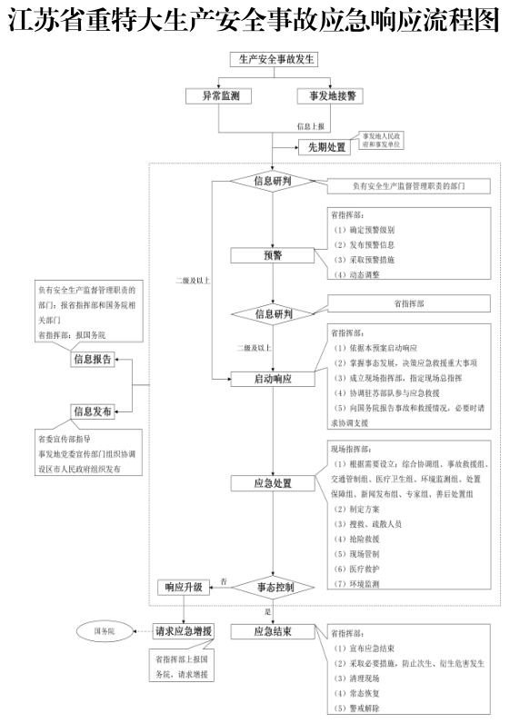 (4)武警江苏省总队:在省委、省政府的统一指挥下参加生产安全事故应急处置和救援;同时,协同公安机关担负事故现场及周边地区的安全警戒,维护社会秩序。