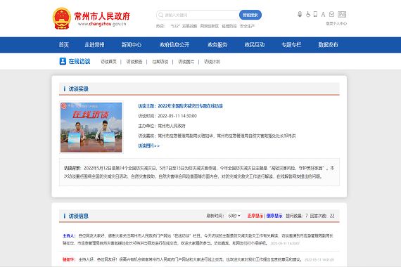 围绕第14个全国防灾减灾日,市应急管理局开展专题在线访谈,重点围绕全国防灾减灾日活动、自然灾害救助、自然灾害综合风险普查等方面内容,对防灾减灾救灾工作进行解读,在线解答网友问题。