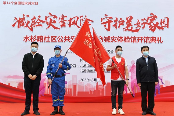 5月12日,钟楼区开展“减轻灾害风险 守护美好家园”主题活动暨钟楼区北港街道水杉路社区公共安全、综合减灾体验馆开馆典礼。现场共同为体验馆揭幕,向钟蓝应急救援志愿服务队、红杉健康关怀志愿服务队授旗,并为优秀志愿者颁发荣誉证书。