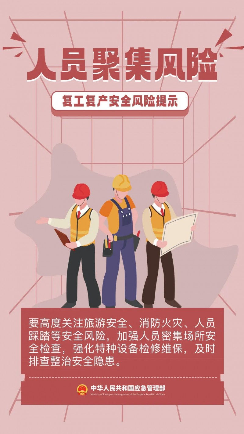 复工复产要警惕哪些安全风险?企业如何结合自身实际制定安全防范措施?落实节后安全复工复产工作,这份安全提示请收好:
