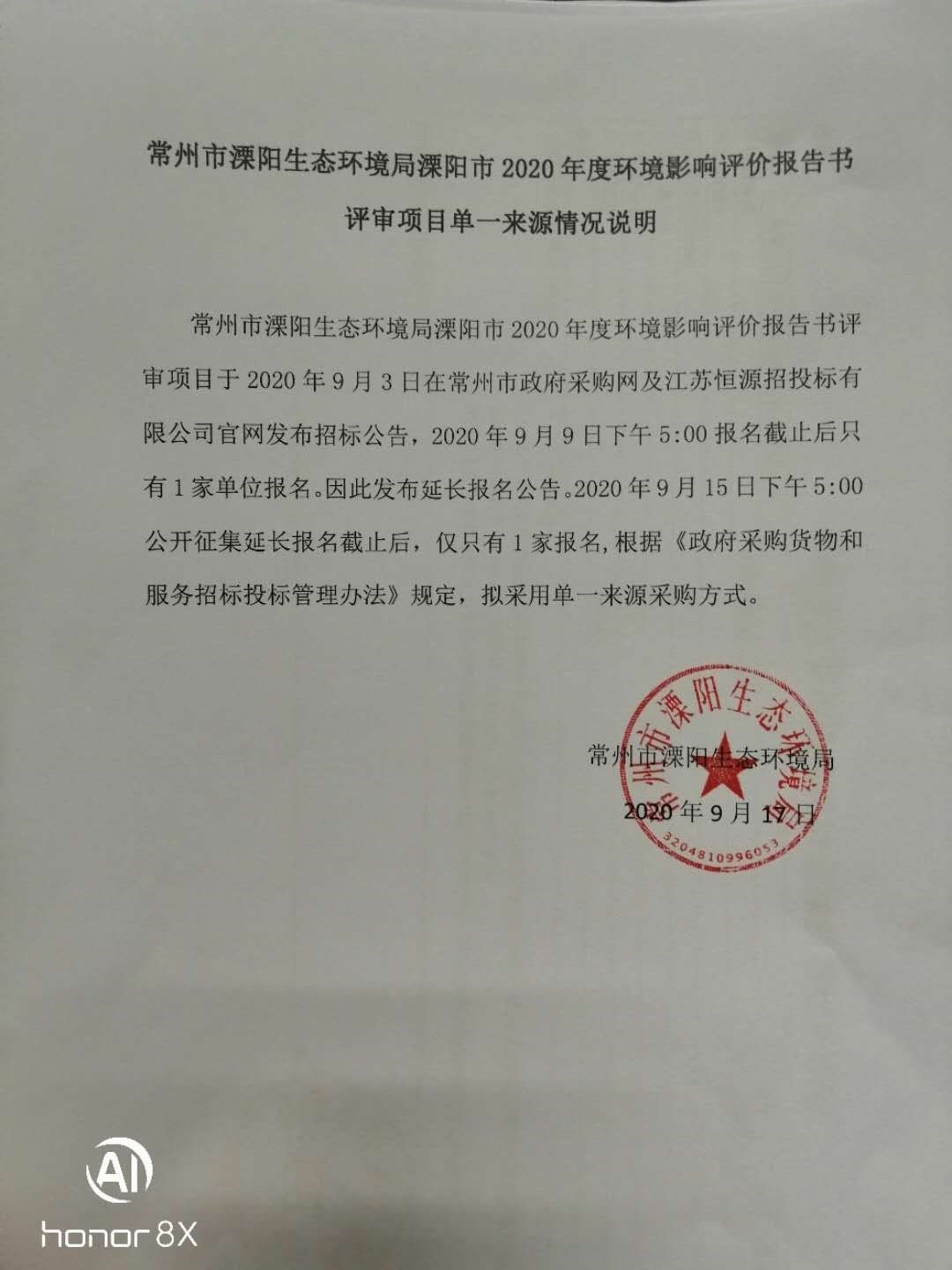 项目名称:常州市溧阳生态环境局溧阳市2020年度环境影响评价报告书评审项目