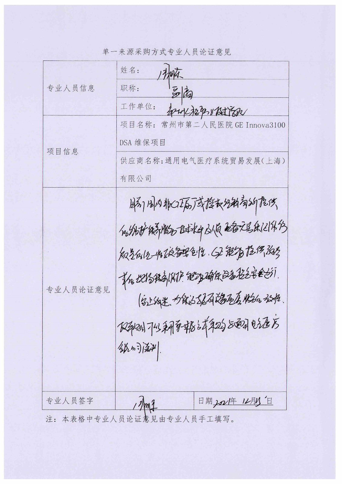 综上所述,为保证与原有设备配套服务的一致性,故本项目申请采用单一来源方式采购,与通用电气医疗系统贸易发展(上海)有限公司谈判。