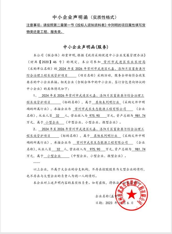 项目名称:2024年至2026年常州市武进区礼嘉、洛阳片区畜禽粪污综合治理工程长效管护项目