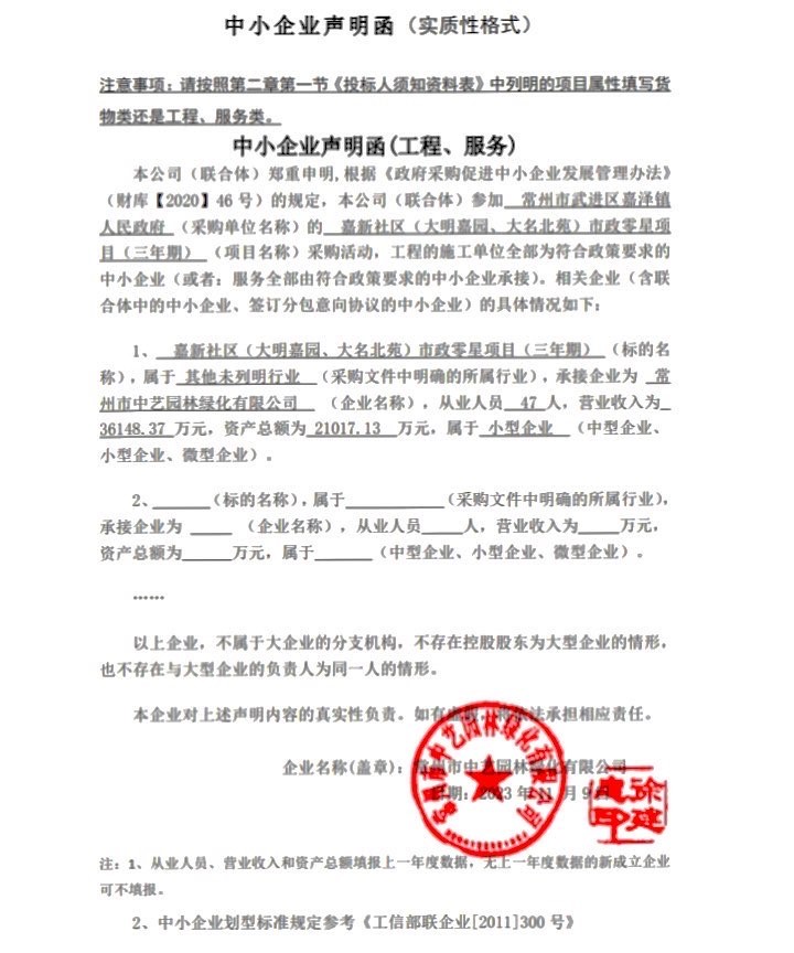 2、中小企业声明函