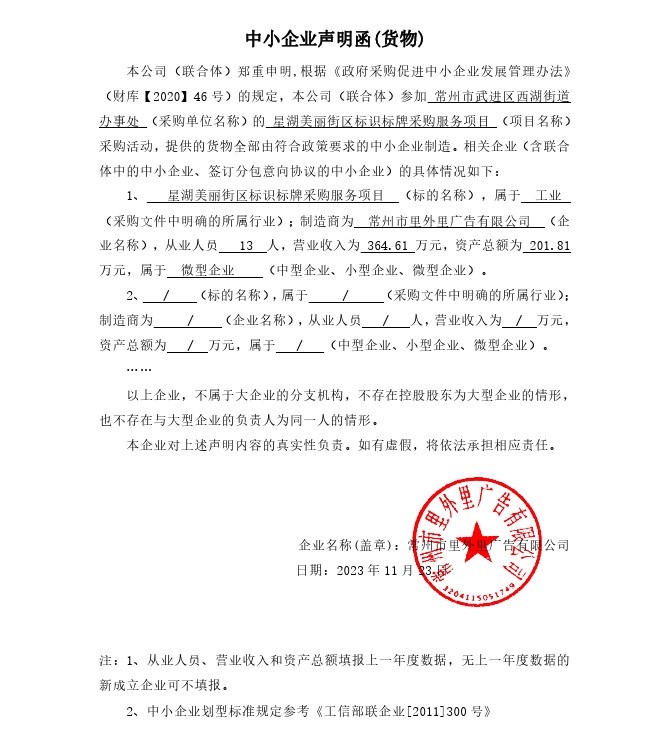 二、项目名称:星湖美丽街区标识标牌采购服务项目