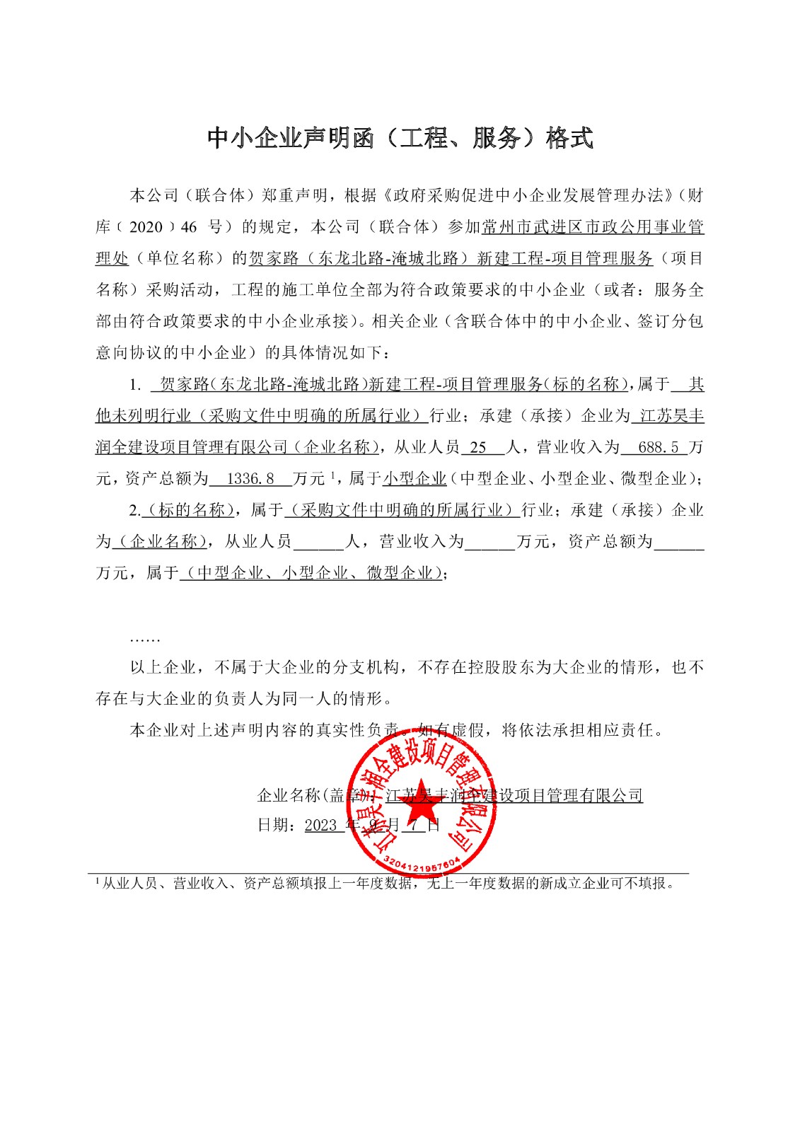 2. 中小企业声明函