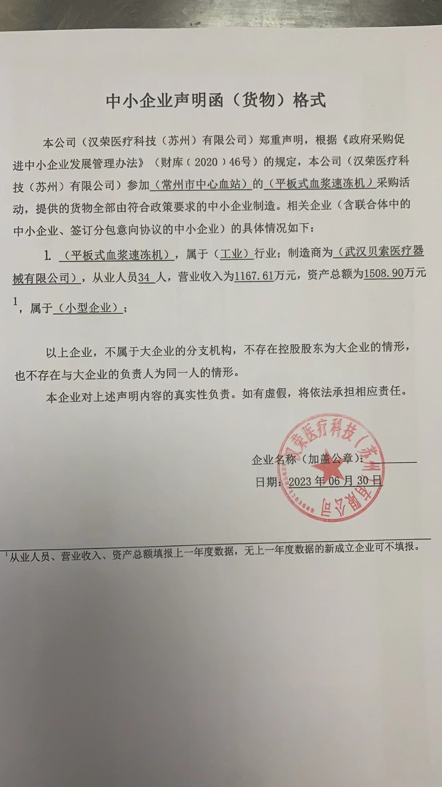 3.中小企业声明函