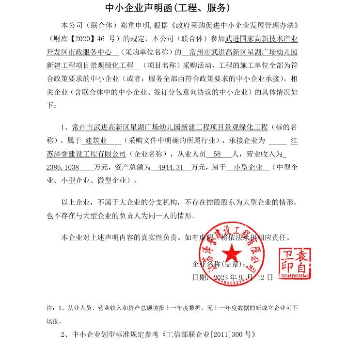 常州市武进高新区星湖广场幼儿园新建工程项目景观绿化工程中标(成交)结果公告