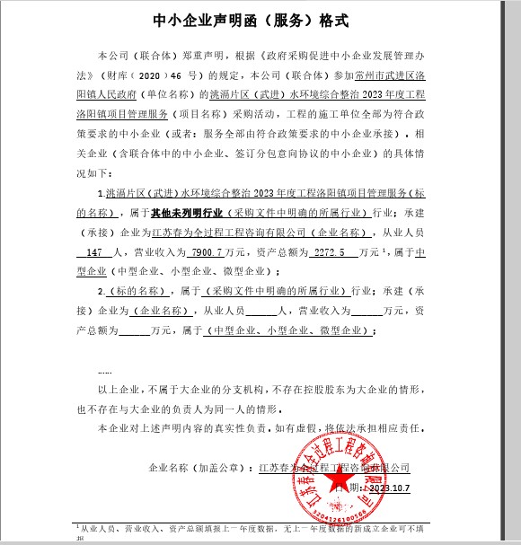 名称:洮滆片区(武进)水环境综合整治2023年度工程洛阳镇项目管理服务。