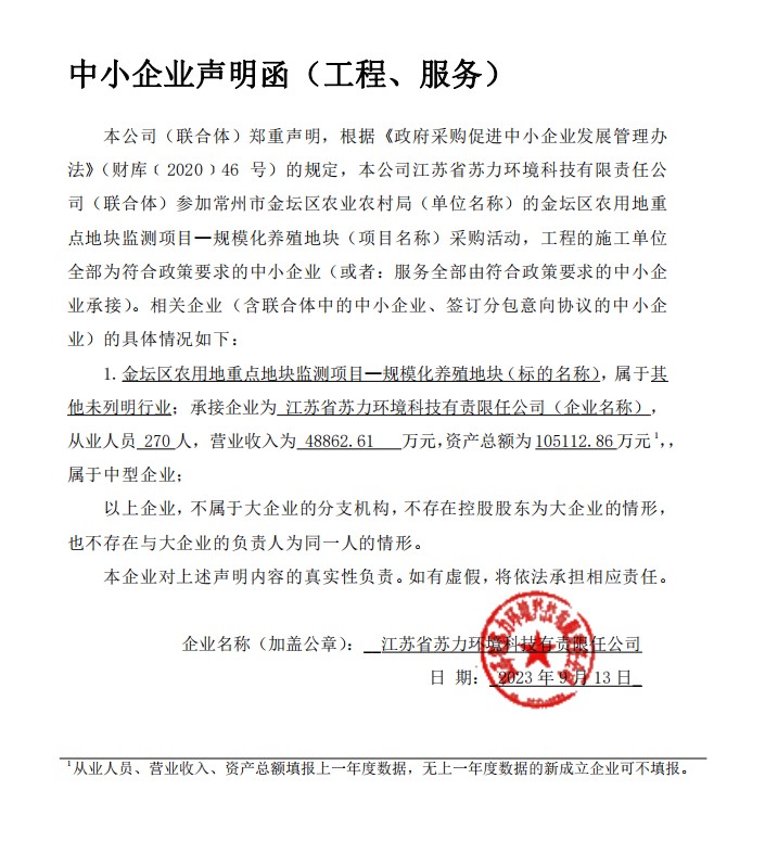 服务要求:对金坛区规模化养殖地块开展农用地重点地块监测。包括但不限于收集资料、现场踏勘、人员访谈、信息整理及分析、采样点位布设、现场采样、样品检测、土壤样品分析测试、监测报告编制、专家咨询和专家评审费等,完成规模化养殖地块监测报告并通过专家评审和相关部门备案。